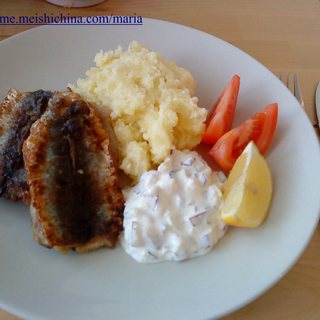 原料:净鲱鱼、土豆、面粉、面包渣、牛奶、奶油、黄油、红圆葱、苹果、柠檬。
